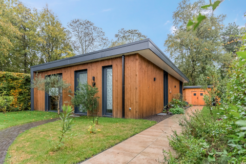 De achtertuin is een fijne mix van groen en bestrating, met grijze terrastegels, borders en meerdere plekken om een terras te creëren. Hier kun je op elk moment van de dag een plekje in de zon of schaduw vinden. Het stenen schuurtje biedt praktische bergruimte en via de achterom is de tuin ook gemakkelijk bereikbaar. Een heerlijke plek om te ontspannen, te spelen of gezellig samen te zijn.
